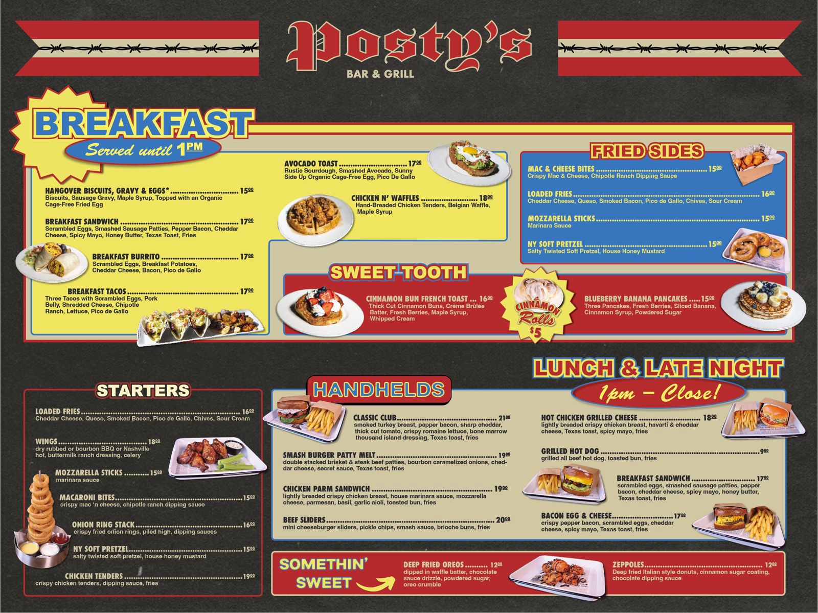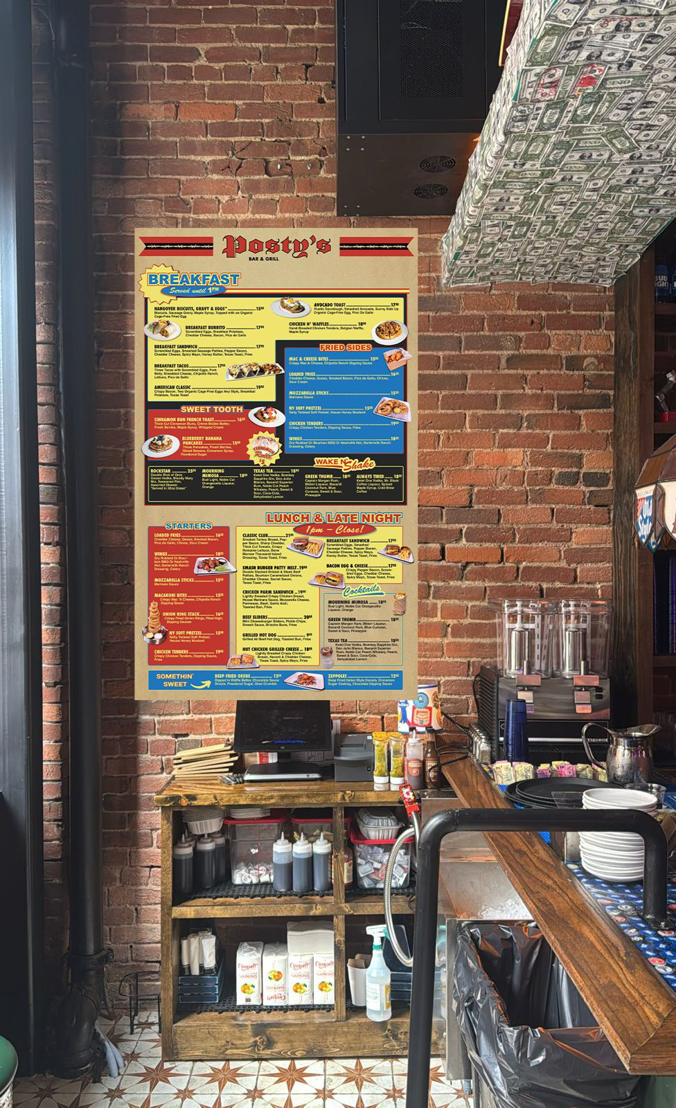 Inspired by the Waffle House menu, the design emphasizes clear organization, bold visual hierarchy, and a familiar diner-style layout. The color palette remained consistent with Posty’s branding, bringing a classic diner feel to 3rd Avenue while staying clean, cohesive, and professional.